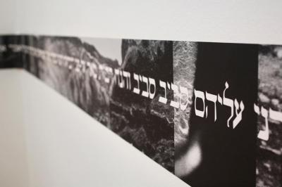 Proroctwo Ezechiela oraz praca Carole Benzaken "Megillah Ben Adam", 2010-2011 (rysunki przetworzone cyfrowo drukowane na płótnie, 26x3180 cm)>>