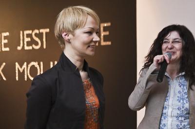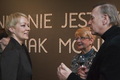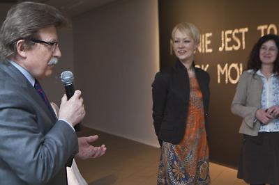 Wernisaż wystawy Agaty Zbylut NIC NIE JEST TAKIE JAK MÓWIĄ od lewej Zbigniew Michniowski Wiceprezydent Bielska-Białej