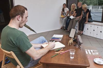 Scenę zainaugurował podczas otwarcia wystawy artysta performer - Sven Sachsalber. Podczas wernisażu rysował swoje autoportrety, posługując się różnymi rekwizytami.