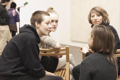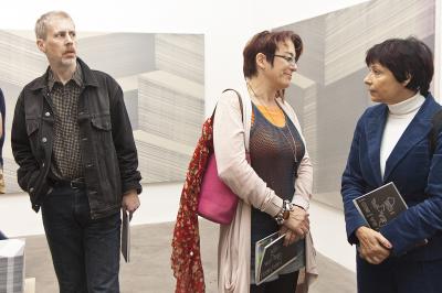 Od lewej: Dominika Olszowy, Justyna Kisielewska, Małgorzata Szymankiewicz - wernisaż wystawy SAMOZAPŁON