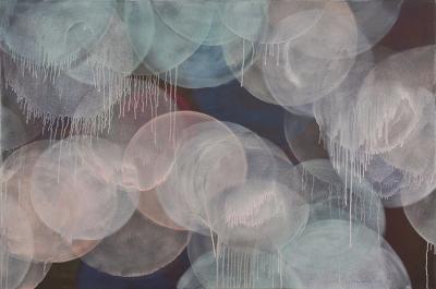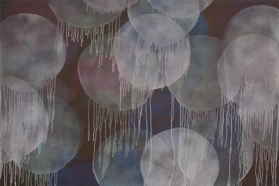 „Redefinicja - nokturn 2", 2013, technika własna, olej, malarstwo na jedwabiu, druk, 80 x 120 cm