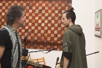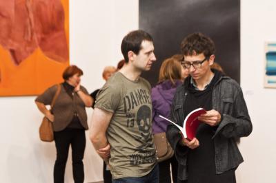 Wernisaż wystawy BIELSKA JESIEŃ 2013, 8 listopada 2013, na zdjęciu, od prawej Grzegorz Borkowski - redaktor naczelny portalu Obieg.pl oraz Alek Hudzik - redaktor Art & Business Wernisaż wystawy BIELSKA JESIEŃ 2013, 8 listopada 2013