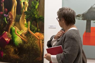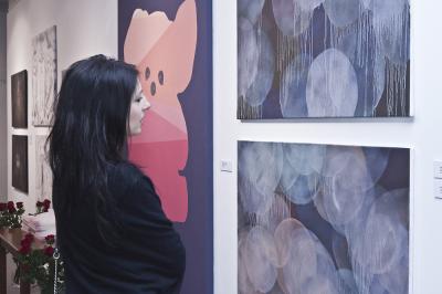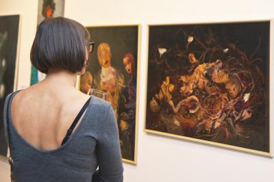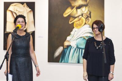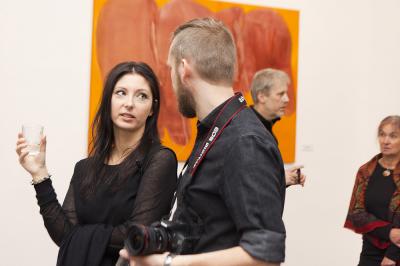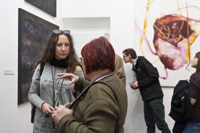 Wernisaż wystawy BIELSKA JESIEŃ 2013, 8 listopada 2013, po lewej Małgorzata Rozenau, artystka Wernisaż wystawy BIELSKA JESIEŃ 2013, 8 listopada 2013