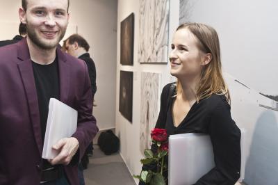 Wernisaż wystawy BIELSKA JESIEŃ 2013, 8 listopada 2013, po prawej Bartosz Kokosiński, laureat wyróżnienia Wernisaż wystawy BIELSKA JESIEŃ 2013, 8 listopada 2013