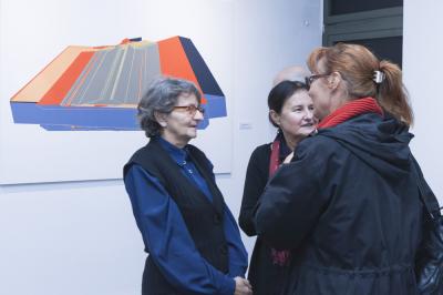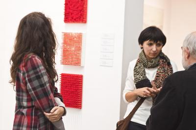 Wernisaż wystawy BIELSKA JESIEŃ 2013, 8 listopada 2013, z lewej Grażyna Cybulska, kuratorka Biennale Wernisaż wystawy BIELSKA JESIEŃ 2013, 8 listopada 2013