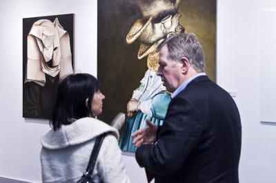 Wernisaż wystawy BIELSKA JESIEŃ 2013, 8 listopada, na zdjęciu artyści - Piotr Korol oraz Ewa Juszkiewicz Wernisaż wystawy BIELSKA JESIEŃ 2013, 8 listopada 2013