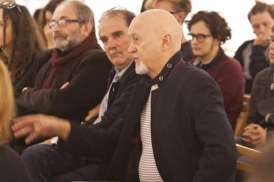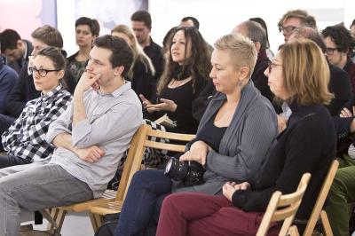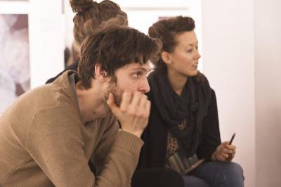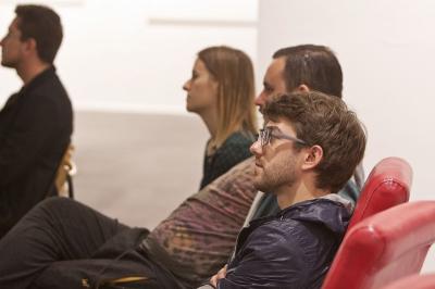 Panel dyskusyjny M jak malarstwo, 9 listopada 2013, Galeria Bielska BWA, po prawej Alek Hudzik, redaktor magazynu Art & Business