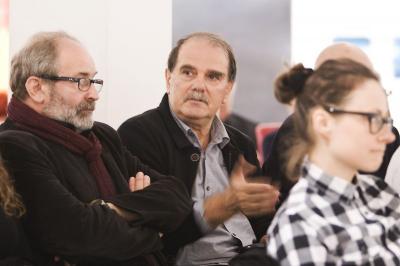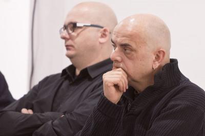 Panel dyskusyjny M jak malarstwo, 9 listopada 2013, Galeria Bielska BWA, na zdjęciu od prawej Paweł Jarodzki i Kamil Kuskowski