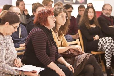 Panel dyskusyjny M jak malarstwo, 9 listopada 2013, Galeria Bielska BWA, na zdjęciu Agata Smalcerz, dyrektor Galerii Bielskiej BWA