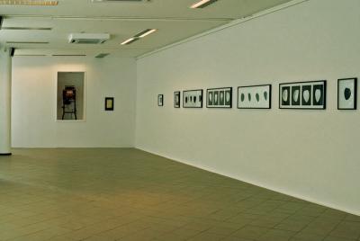 na wprost: Robert Kuśmirowski, Wydruk, 2008, obiekt; po prawej stronie: Agata Bogacka, Złamany okrąg / Broken circle, 2007, fotogramy