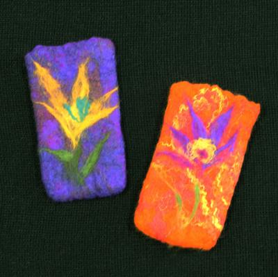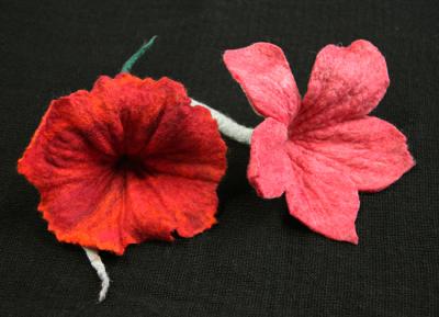 Filcowy kwiat może być broszką lub dekoracją ubioru lub mieszkania.