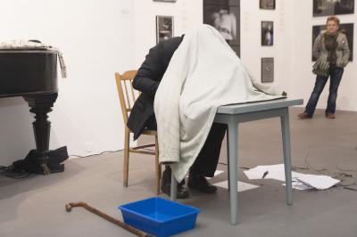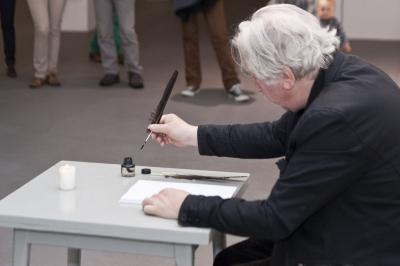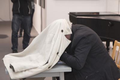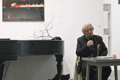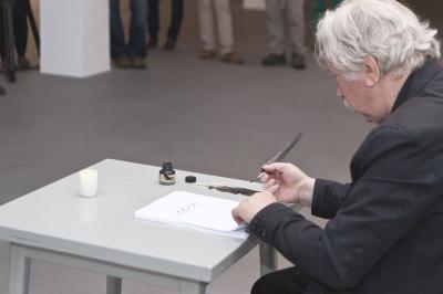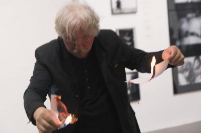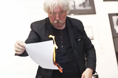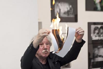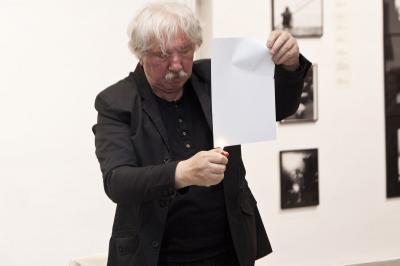 Performance by Zbigniew Warpechowski "Poematki was given at the opening of exhibition Polish Radical Performers 1967-1989, 17th of May 2014, Galeria Bielska BWA, Bielsko-Biała, photo by Krzysztof Morcinek and Justyna Łabądź
