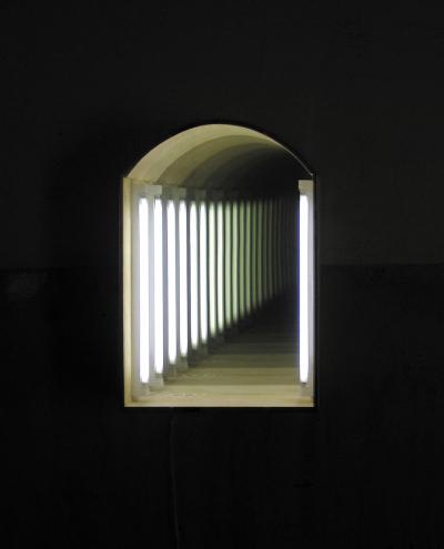 This is an exhibition of installations and objects, which create optical illusions and are based on the knowledge of optics and mathematics as well as of human irrationality. Present here are two main trends visible in all the previous works of Leszek Lewandowski: in those using the one-way mirror, such as Macewa, Passage, Memento, Coffin Portrait, Little House, Canal, and Homage Hawking, and in the newest ones: Sewer and One Shot, One Man - both to be premiered in Galeria Bielska BWA - and the quasi-hallucinogenic Room of Confessions, Imaginoscope and Merry-go-round.