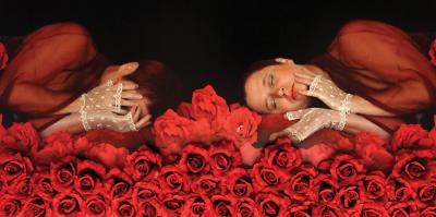 Prezentacja objęła prace fotograficzne o charakterze intermedialnym: wielkoformatowe barwne fotografie - wizerunek kobiety i ludzkiego szkieletu - z wmontowanymi gotowymi elementami typu: sztuczne kwiaty, biżuteria, koraliki, lampki światła ledowego oraz wielkoformatowe kolaże - wizerunki kobiet, ludzkiej czaszki, kwiatów róży - złożone ze zmultiplikowanych zdjęć-modułów, które zostały ręcznie zszyte.