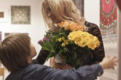 Karina Czernek z synem Miłoszem_wernisaż wystawy SZEPTEM WIDZENIE