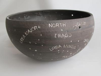 Agata Surdziel, „Mapa nieba”, 2012, czarna glina na kole garncarskim, pieczątka, temperatura wypału 1320°C