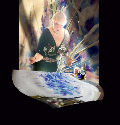 "Nowadays I don't paint with a brush, but with water and breath. I blow particles of paint on the canvas and form them into lagoons of stalactites or other desired shapes. This creates a kind of background which I sometimes leave as it is or at other times complement it with new forms to give the work a deeper meaning. In my creative process I'm often helped by one of the five natural elements - water. It is the rain that creates the unpredictable forms which I later mould into a coherent whole. Water and breath - these two essential elements of life have become my greatest sources of inspiration" - explains Agnieszka Nowińska.
