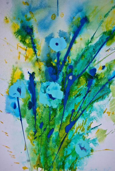 Small exhibition of paintings created with the use of a unique technique involving water and breath which the artist learned during the three-year study at the Academy of Fine Arts in Valencia (Spain). Nature-inspired works are heavily saturated with colour.
