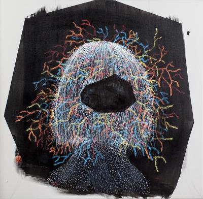 Długo nic, 2015, akryl na płótnie, 100 x 100 cm