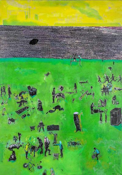 Śląskie podwórko, 2014, olej na płótnie, 130 x 100 cm