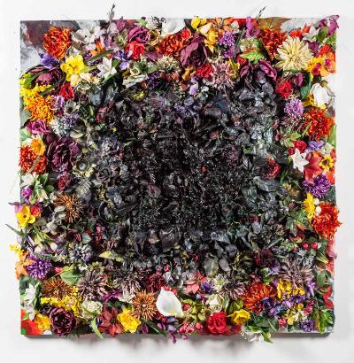 La jolie jalousie, 2015, akryl, kolaż, płótno, 130 x 130 cm