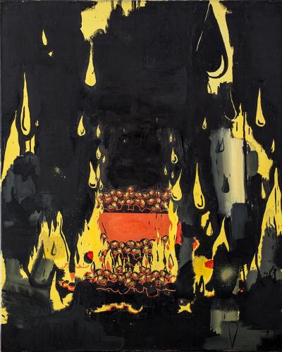 Miód, 2014, olej i papier na płótnie, 85 x 80 cm