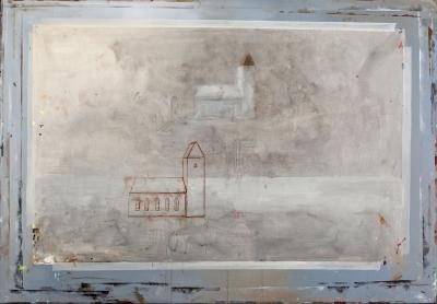 Rysunek z Kościółkiem, 2015, olej na płótnie, 130 x 185 cm