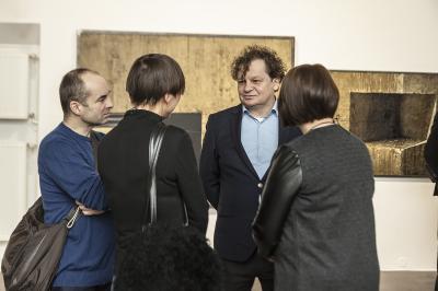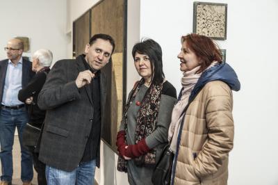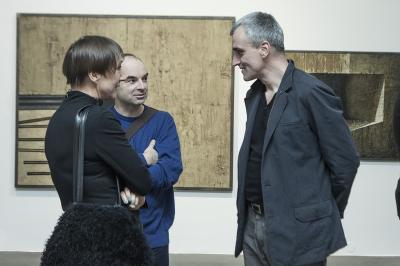 Ewa Zawadzka, MATERIA CISZY, wernisaż wystawy, na zdjęciu od lewej artyści: Tamara Berdowska, Leszek Oprządek, Sławomir Brzoska