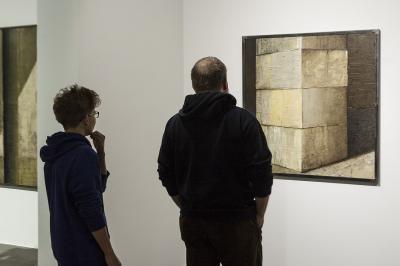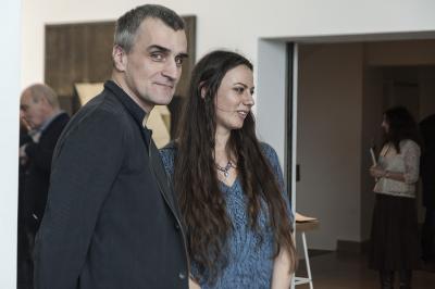 Ewa Zawadzka, MATERIA CISZY, wernisaż wystawy, od lewej Michał Kliś i Ewa Zawadzka