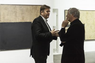 Ewa Zawadzka, MATERIA CISZY,wernisaż wystawy, od lewej Naczelnik Wydziału Kultury Urzędu Miejskiego w Bielsku-Białej - Jerzy Pieszka oraz Michał Kliś