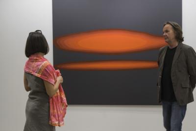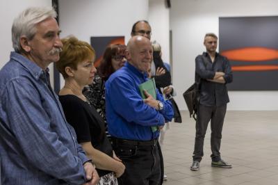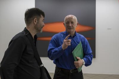Wernisaż wystawy Artura Trojanowskiego EMANACJE, od lewej Ryszard Grzyb i Karina Czernek