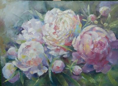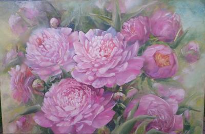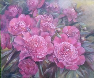 Alina Horwat, Piwonie, olej na płótnie