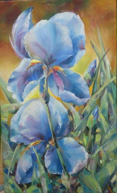 Alina Horwat, Irysy, olej na płótnie