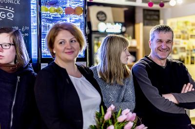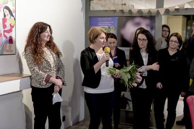 Wernisaż wystawy malarstwa Marty Fonferek, 3 lutego 2017, druga z lewej Joanna Brzozowska-Papuga