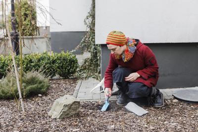 „Widoczki" - to działania performatywne, jakie Patrycja Dołowy realizuje w Bielsku-Białej w dniach 1-10 marca br. Performerka pojawia się w różnych punktach Bielska-Białej i zakopuje w ziemi niewielkie fragmenty gipsowych odlewów, na których utrwaliła fotograficzne portrety anonimowych mieszkańców miasta.