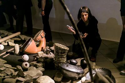 Dolna sala galerii przekształciła się w trakcie wernisażu w Synestetyczną Salę Koncertową Dźwięków Ziemi.