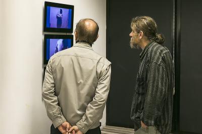 Wernisaż wystawy Ewy Swidzińskiej SELFOWAĆ!, od lewej artystka - Ewa Swidzińska, Agata Smalcerz - dyrektor Galerii Bielskiej BWA