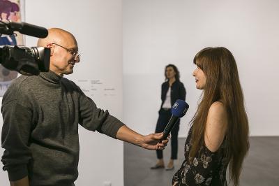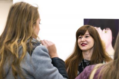 Wernisaż wystawy Martyny Czech JAD, z prawej Martyna Czech