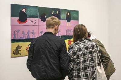 Wernisaż wystawy Martyny Czech JAD, na zdjęciu Martyna Czech, Jakub Banasiak - kurator wystawy