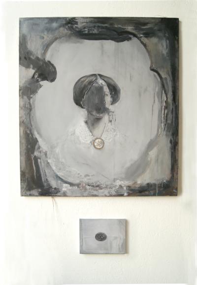 Bez tytułu 2 (dyptyk), 2017, olej na płótnie, 90 x 80, 18 x 13 cm