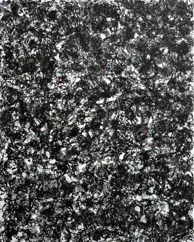 BW, 2017, tatuaże zmywalne na płótnie, 50 x 40 cm