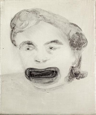 Szczękościsk, 2016, olej na płótnie, 18 x 15 cm