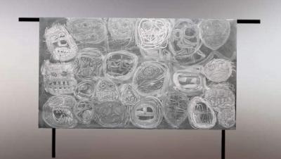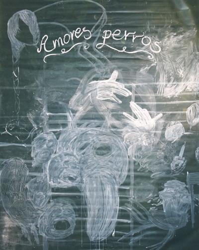 Amores perros, 2016, akryl i kreda na bilbordzie, 290 x 228 cm