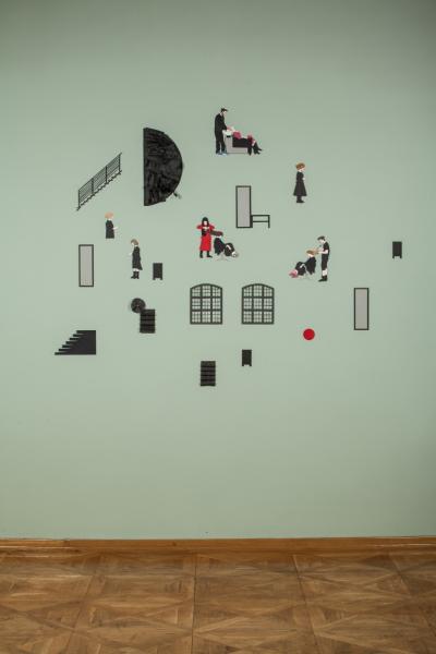 Jaga Hupało, Born to Create, 2016, papier kolorowy wycinany ręcznie, klej na ścianie galerii, 150 x 200 cm