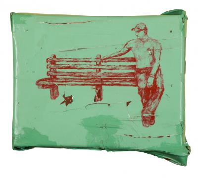 Amor, 2016, tempera, akryl, alkid, lakier do podłóg na pościeli nabitej na krosno, 23 x 30 cm