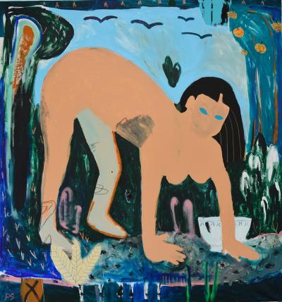 Szczekająca, 2017, technika mieszana, 150 x 140 cm