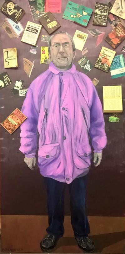 Bukinista. On czyta. Czasem kieszonkowe wydania kryminałów, czasem książkę, którą ktoś zostawił na siedzeniu autobusu, czasem tom, który ktoś, kompletnie nie przestrzegając zasad segregacji odpadów, wyrzucił na śmietnik. Rentę woli przeznaczyć na „wino marki wino", ale dobrą (darmową) lekturą nie pogardzi. Dzięki czytaniu wie, co to „apopleksja" i „wapory". Czasem w kolejce w osiedlowym sklepiku zabłyśnie zwrotem „jak pani znajduje ten chlebek", czy „pięknie szanownej pani w tej koafiurze". Bukinista wierzy, że ten świat w końcu zacznie kręcić się we właściwym kierunku,