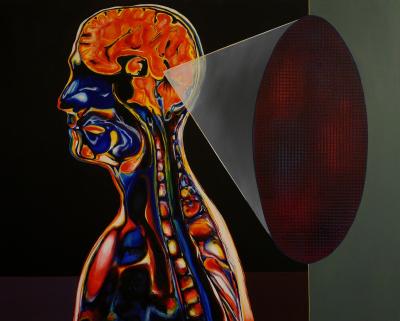 Synestezja to nie tylko zdolność wybrańców takich jak Vladimir Nabokov. To zdolność, jaką obdarzony został każdy z nas, a którą z łatwością „uruchamiają" obrazy Leszka Margasińskiego. Wibracja nieomal technicznej precyzji zanurza patrzącego w brzmienie i szum barw, które okalają jego oko już w pierwszym zetknięciu z pracami tego artysty. „Upgrade" przedstawia szyszynkę, część mózgu uznawaną niegdyś za siedzibę duszy, zaś współcześnie za organ obrabiający geometrycznie obrazy rzeczywistości. Należałoby jednak powiedzieć: „Upgrade" to namiętny zarys modelu postrzegającego, który wibruje wielością modalnych ujęć, zestawień linii; to metaforyczny obraz Niewiadomego, na którym plama jest cieniem, a jednocześnie eksplozją pulsującej wyobraźni. Obraz Margasińskiego każe oczom otworzyć się szerzej, intensyfikuje doznania cielesne i nadaje plastycznym liniom puls. Chwyta życie, moment spięcia wielozmysłowych wrażeń, a faktura przepisanego w sztukę rytmu życia - tej płynnej kakofonii - szumi, zgrzyta, szepce, rezonując z ciałem postrzegającego. To trzewia zmysłowego, to urzekające spełnienie „pasji naukowca i precyzji artysty".