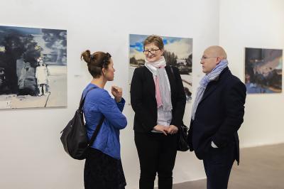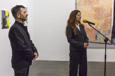 Wernisaż Wystawy Roberta Bubla, od lewej artysta, Agata Smalcerz, dyrektor Galerii Bielskiej BWA, 1.02.2018