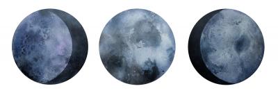 Izabela Ewa Ołdak, Moon Trinity, 2017, acrylic on canvas, 100 x 70 cm
